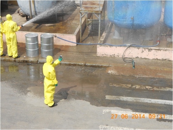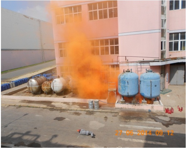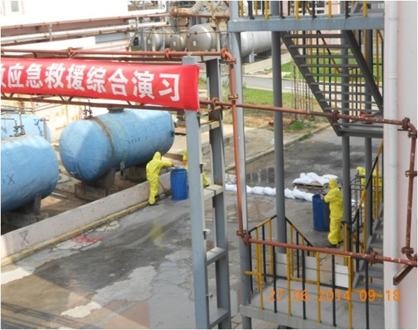 為了檢驗(yàn)、評(píng)價(jià)和保持公司生產(chǎn)安全事故應(yīng)急救援預(yù)案的應(yīng)急能力及有效性。2014年6月27日,EHS部聯(lián)合公司各部門組織了一次危險(xiǎn)化學(xué)品泄漏事故應(yīng)急救援演習(xí)。