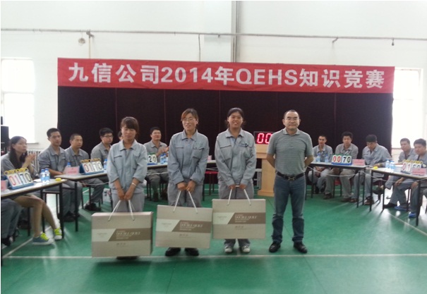 為了健全完善質量管理體系、環(huán)境管理體系、職業(yè)健康安全管理體系,加強全員全過程質量、環(huán)境、職業(yè)健康安全管理,提高全體員工質量、環(huán)境、職業(yè)健康安全意識,在公司領導的大力支持下,經(jīng)過一個月的策劃和準備, 2014年8月28日公司QA部和EHS部聯(lián)合舉辦了第一階段QEHS知識競賽,公司各部門/車間踴躍參加,同時得到了辦公室的積極協(xié)助,使得活動順利進行并圓滿結束,各競賽隊取得了優(yōu)異的成績,競賽名次如下: