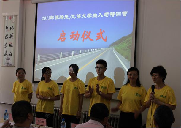 “ 2015年佳瑞米/九信大學(xué)生入司特訓(xùn)營(yíng)”項(xiàng)目啟動(dòng)儀式于7月15日上午8:30,在大連九信公司多功能會(huì)議室隆重召開(kāi)。參加啟動(dòng)儀式的有公司董事長(zhǎng)張映君、副總經(jīng)理李傳波、副總經(jīng)理陳全利、副總經(jīng)理李君、財(cái)務(wù)總監(jiān)王剛、研發(fā)中心主任王榮良、工程技術(shù)轉(zhuǎn)化中心主任湯福文,以及培訓(xùn)單位北京元點(diǎn)力公司項(xiàng)目經(jīng)理穆春松、駐場(chǎng)顧問(wèn)金賢姬、李進(jìn)老師等人出席。