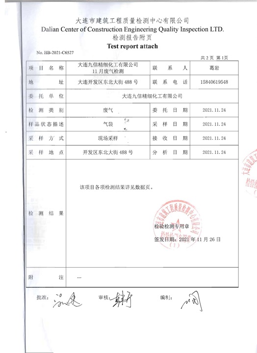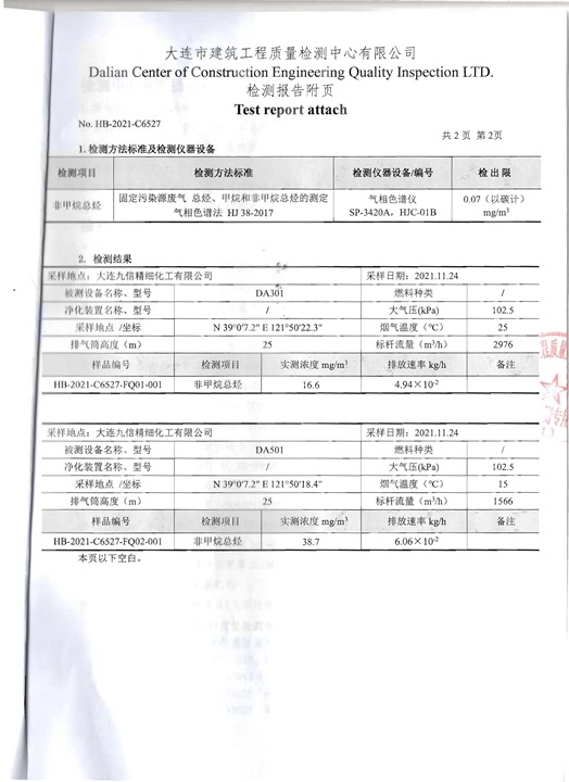 2021年11月份非甲烷總烴監(jiān)測信息公開